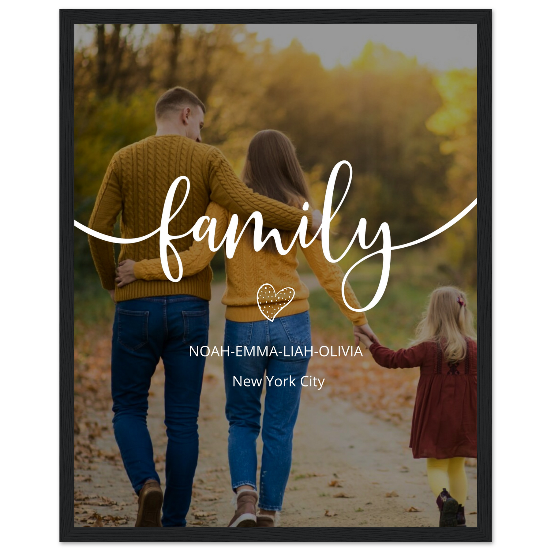 Capture the essence of your family with our "Family Cityscape" Framed Poster. This beautifully designed poster combines your family's photo, names, and the city that holds a special place in your hearts, creating a unique and cherished keepsake for your home.